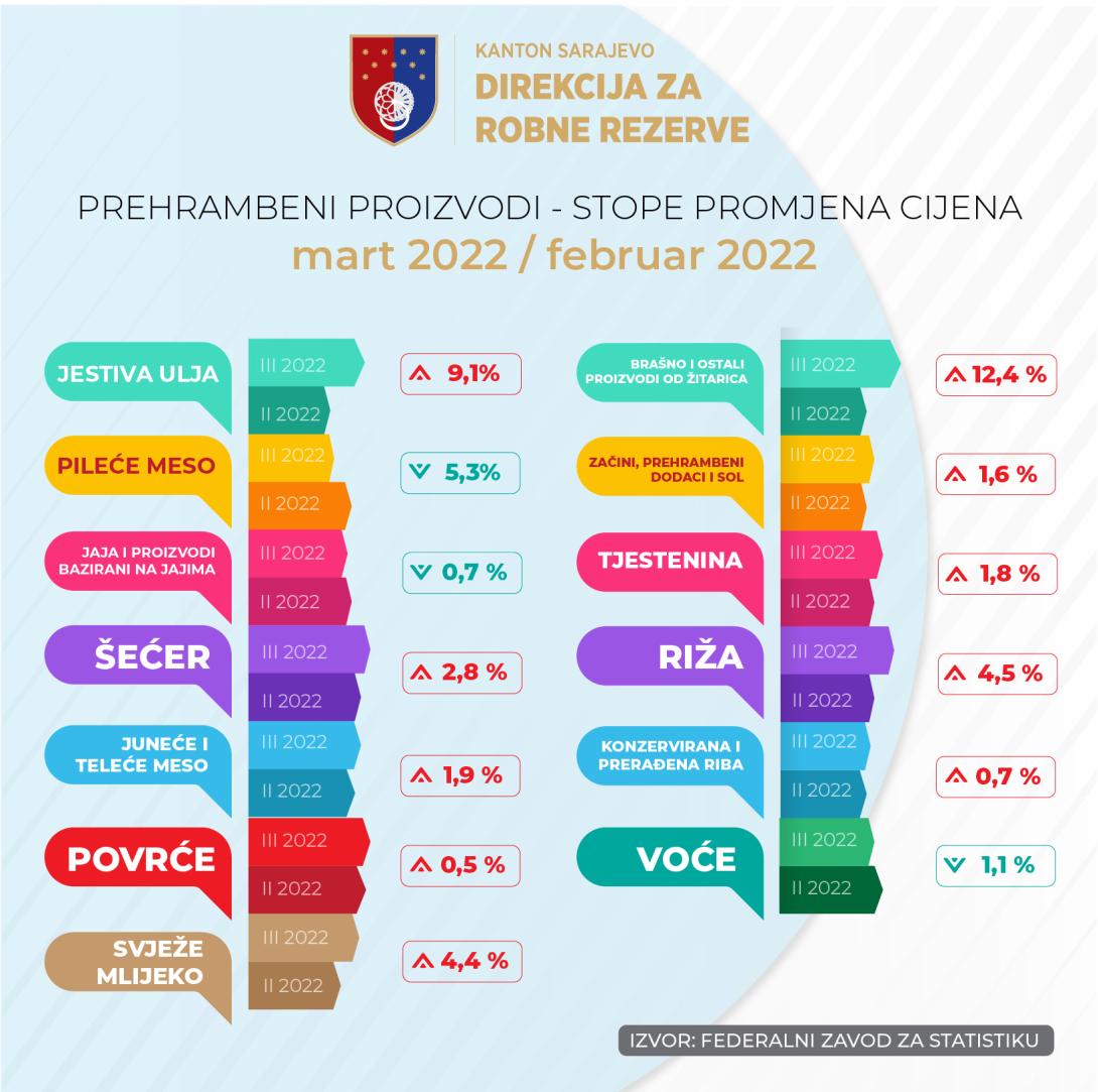 Uporedne analize cijena za februar 2021. i februar 2022. godine, kao i mart 2021. i mart 2022. godine, a prema zvaničnim podacima Federalnog zavoda za statistiku, i dalje pokazuju rast, koji direktno utječe i na upravljanje robnim rezervama, ali i direktno na kupovnu moć građana i građanki.